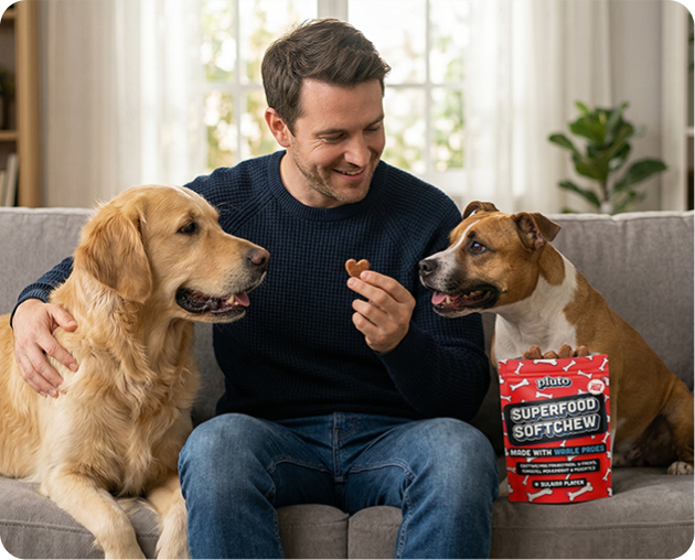 Pluto exists for that moment. Whole food supplements designed to support every dog, every breed, every stage of life — so you can give them more of the good years.